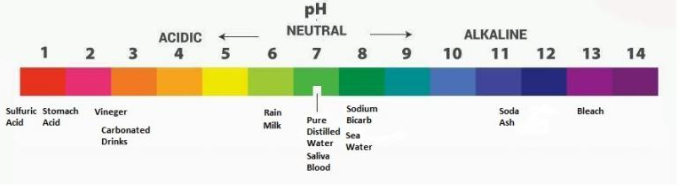 pH range from very acidic 0 to neutral 7 to very alkaline (basic) 14.