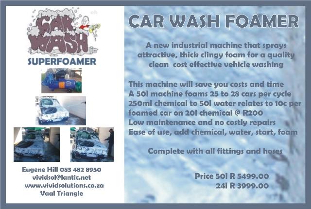 Cost effective, 250ml soap chemical to 50l water, (your choice of chemical) foams 25 to 28 cars. Chemical @ R200 for 20l, relates to 10c per car foamed or 2000 cars foamed.